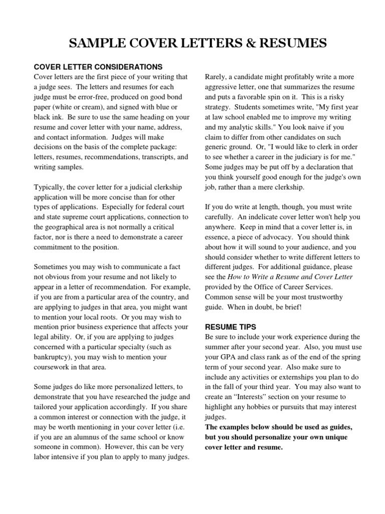Sample Resumes And Cover Letters Law Clerk Judge