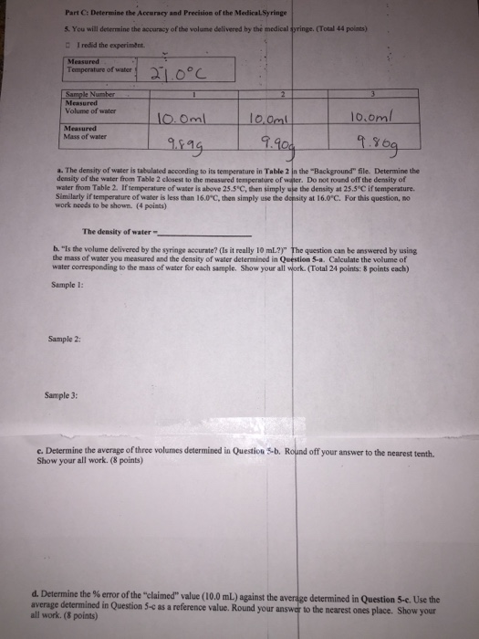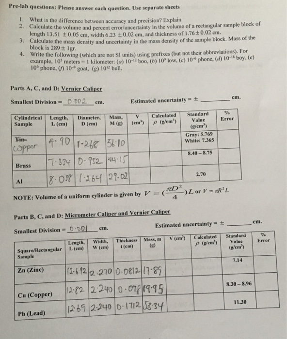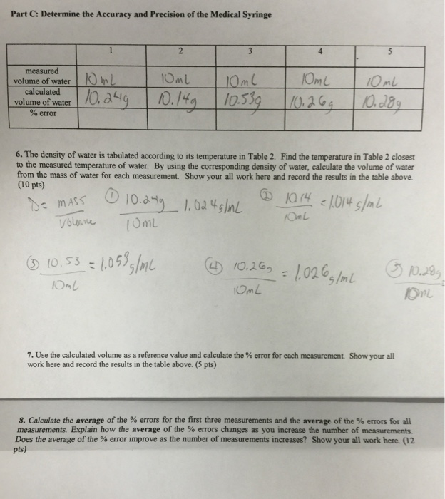 Scientific Measurements Accuracy Precision Percentage Error