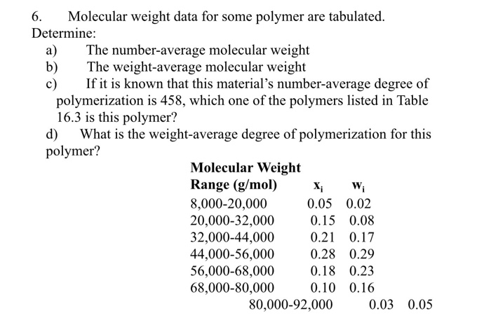 Calculate The Viscosity Average Molecular Weight F Chegg Com