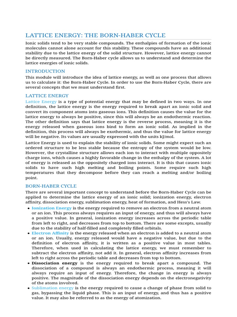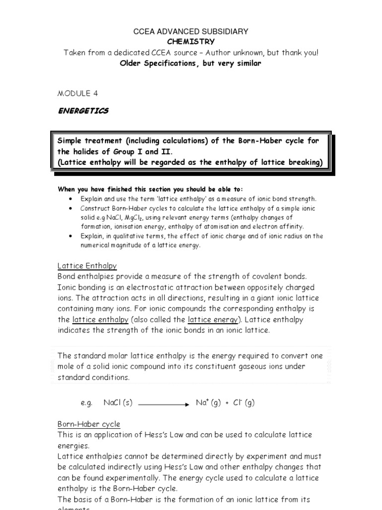 The Calculation Of The Lattice Energy The Born Haber Cycle