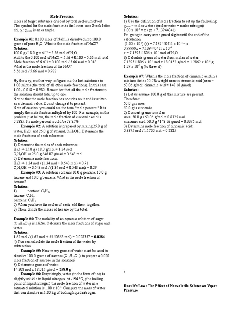 What Is The Mole Fraction Of Ethanol In A Solution Made By