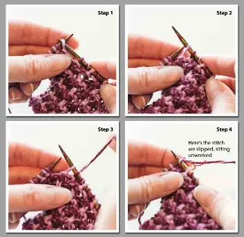 Step 2 insert your working needle into the first stitch on the needle with all the stitches. This video describes how to slip the first stitch edge stitch of a row purlwise to make a tidier edge. Often the pattern will specify slip the first stitch purlwise before continuing on with the regular stitches. Many flat knitting patterns add instructions to slip the first stitch.