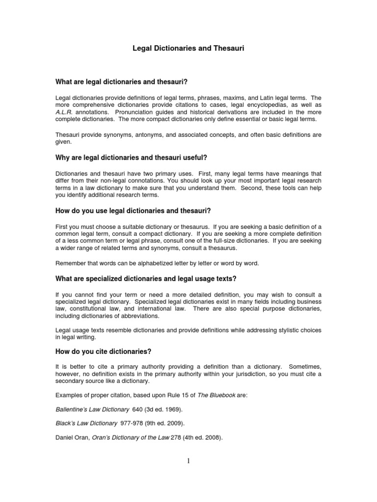 Guide Legal Dictionaries And Thesauri Dictionary Definition