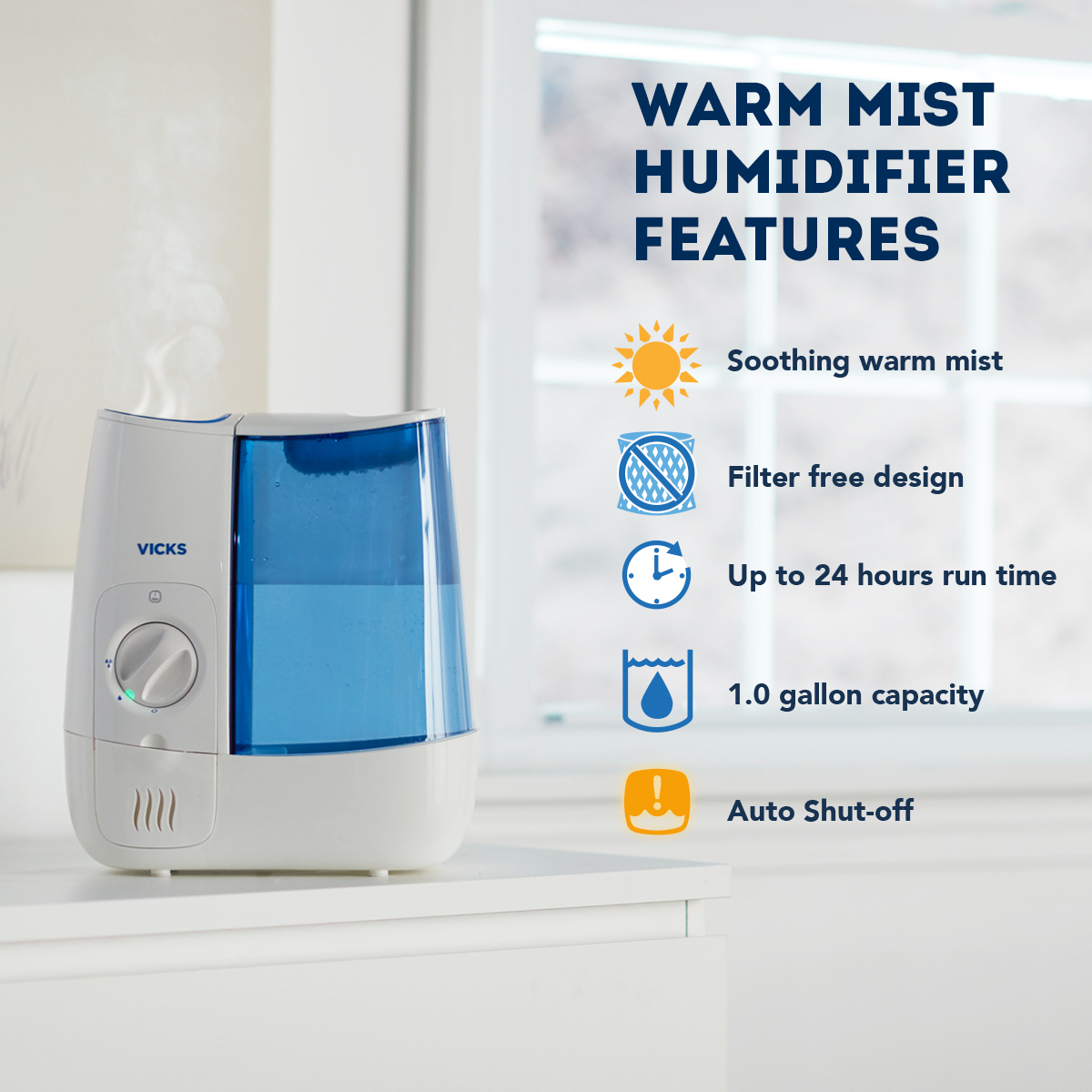Vicks Warm Mist Humidifier Cold Cough Flu Beauty Health
