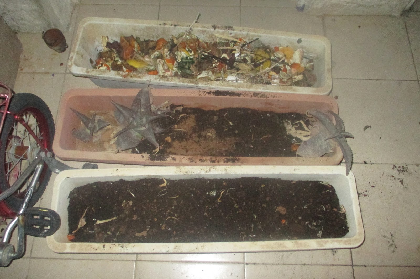 I now have a regular compost bin and the worm bin. This means that with a two story model you can harvest the finished compost from one tote without having to separate the worms from the soil. You may choose to.