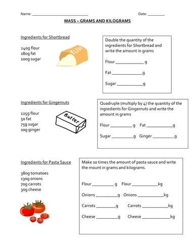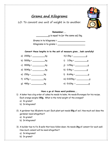 Measuring Weight Kilograms And Grams Worksheets