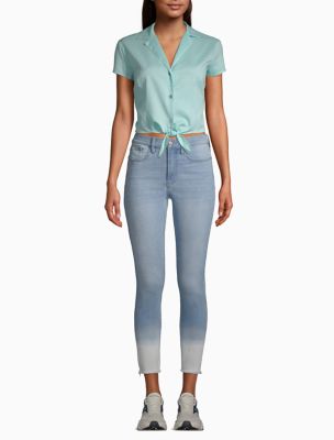 Tie Front Short Sleeve Button Down Shirt Calvin Klein