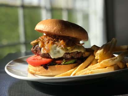 Cut Craft Burger Is Cooking On Black Background In Black Food