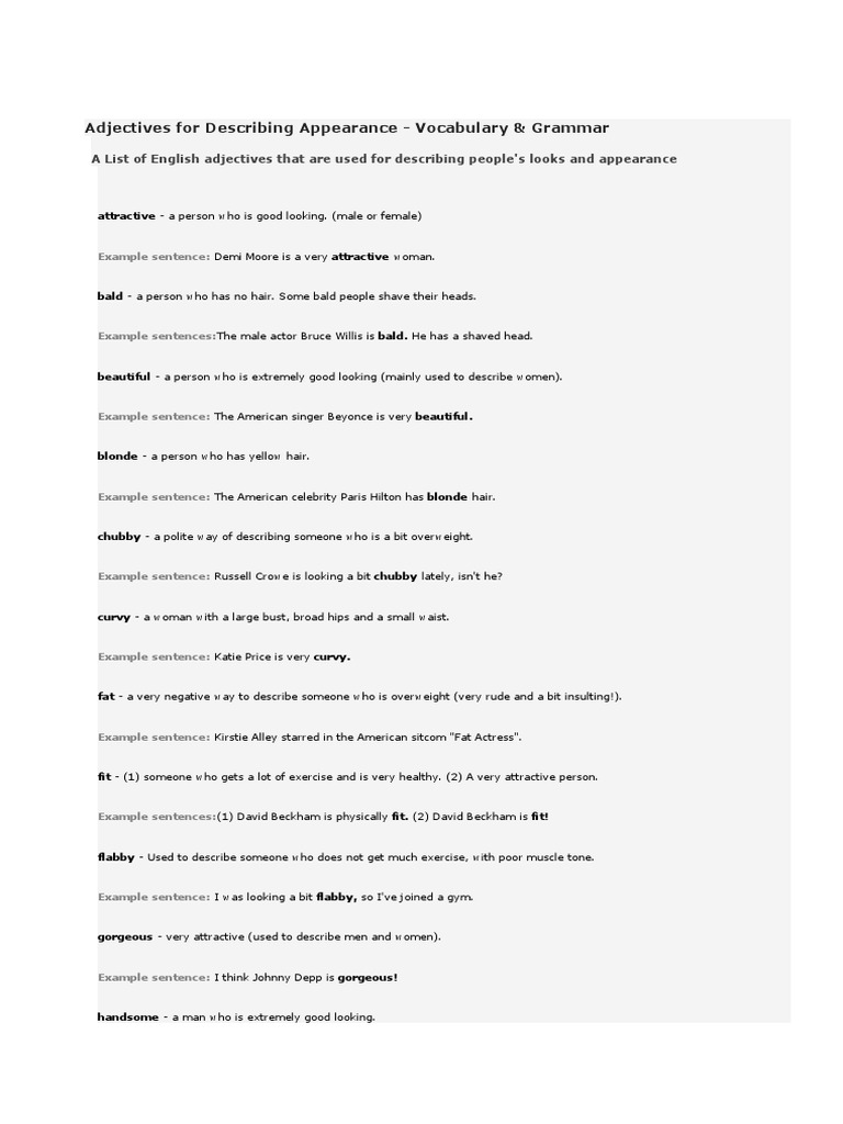 Adjectives To Describe A Person Looks لم يسبق له مثيل الصور