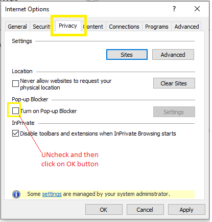 Disable Pop Up Blocker Uwe Bristol Library