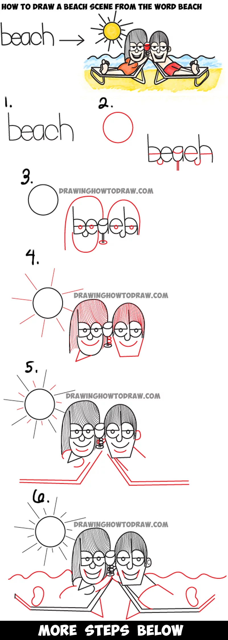 How To Draw A Scenery Of Sea Beach Draw Beach Scenery For Kids