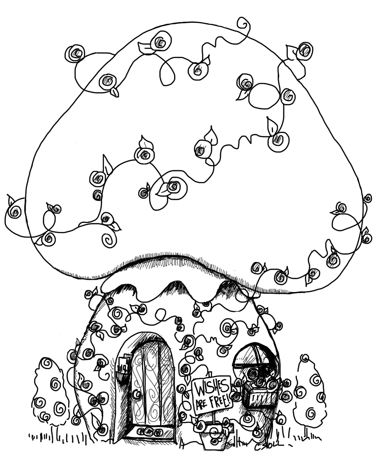 Cool Mushroom Drawings Mushroom House Illustration Fairy