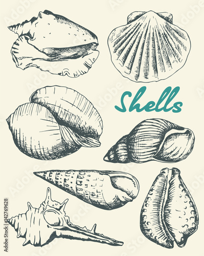 Seashells Drawing Illustration Art Photo Realistic Etsy