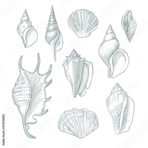 Sea Shells Hand Drawn Sketch Style Illustration Pattern Isolated
