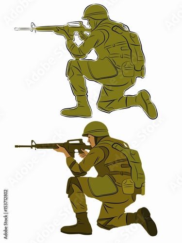 Soldier Holding Gun Ready Shoot Illustration Stock Illustration