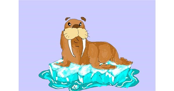 Marine Mammal Walrus Colored Drawing On The Paper Marine Mammal