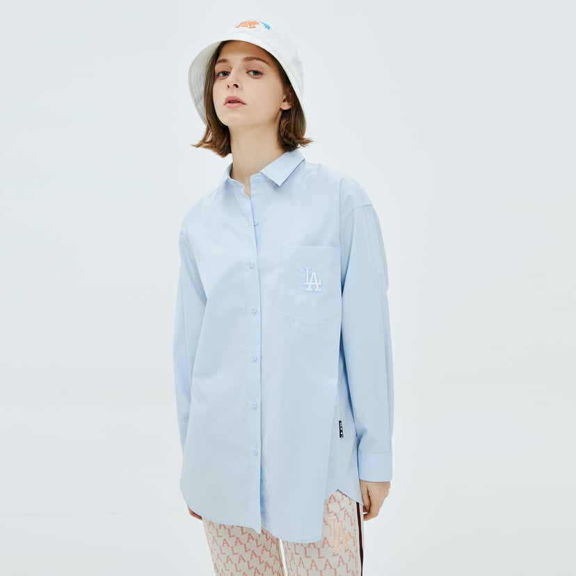 Cat Leaf Embroidered Pocket Lapel Collar Long Sleeve Button Down
