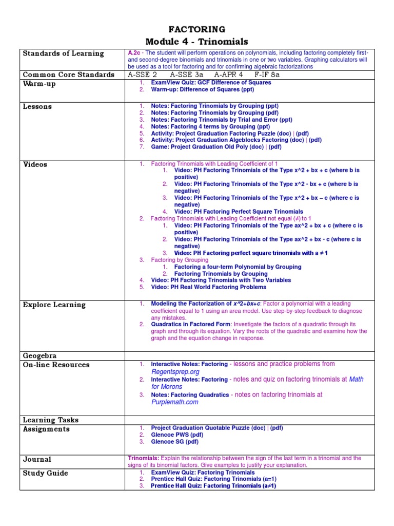 Factoring Perfect Square Trinomials Mathbitsnotebook A1 Ccss Math