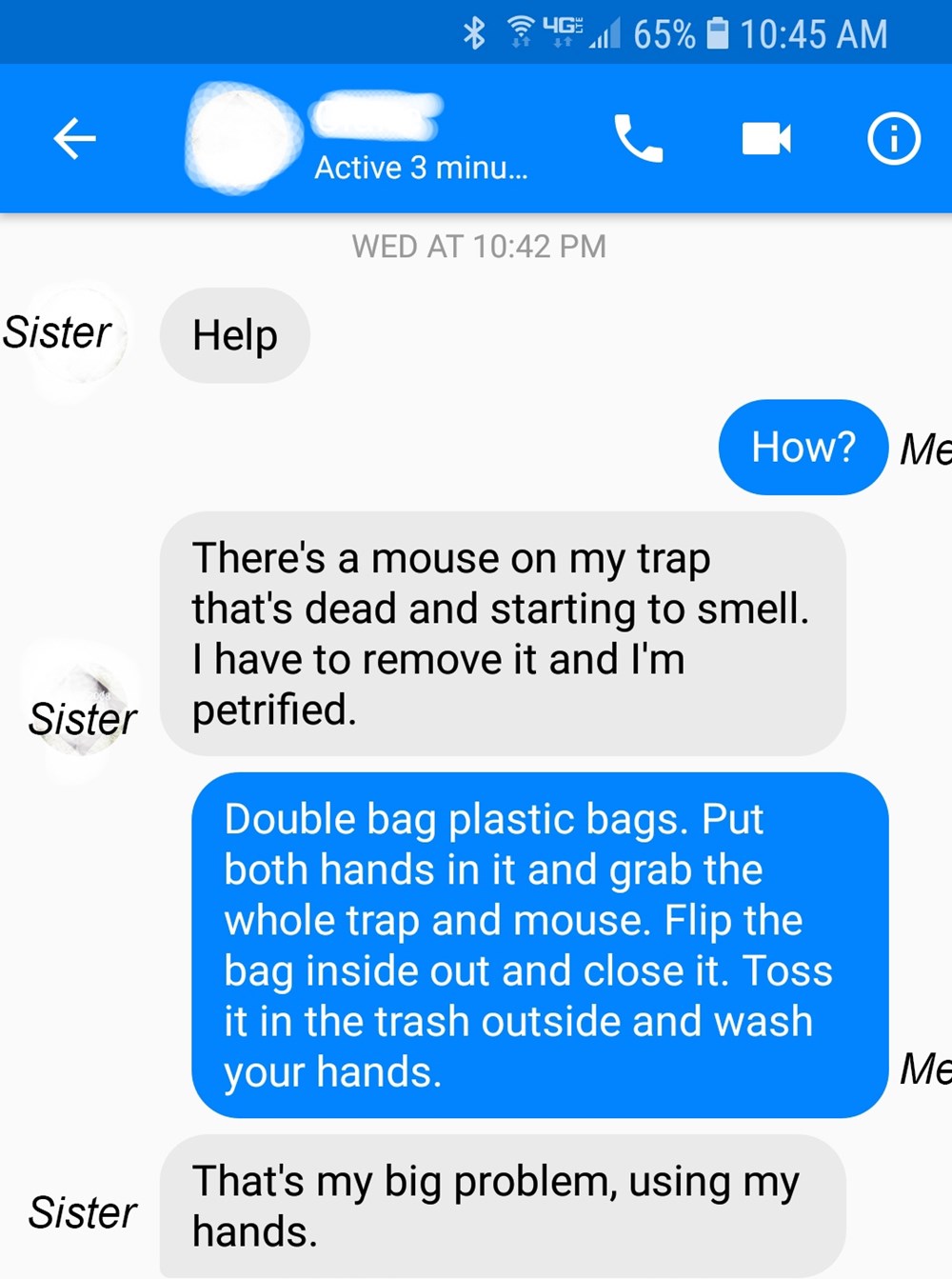 Sister Texts Her Brother For Help Upon Finding A Dead Mouse In Her