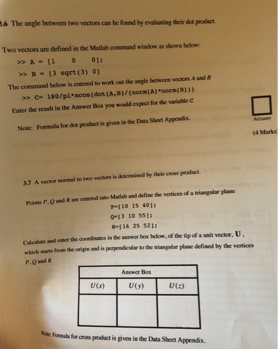 Solved Finding The Angle Between Two Vectors In Space My