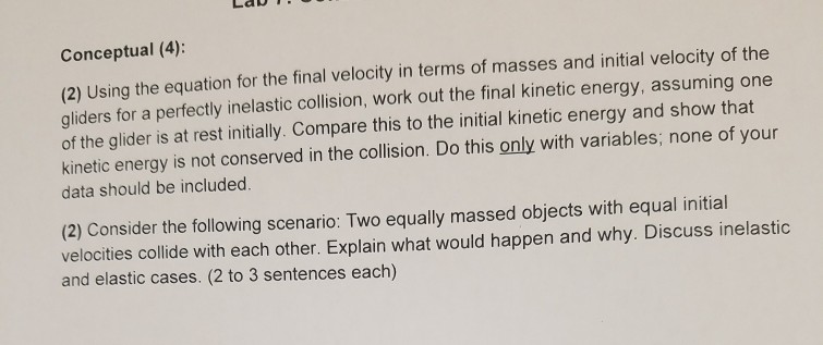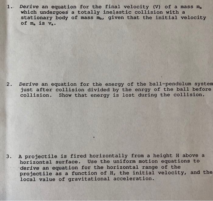Solved 1 Derive An Equation For The Final Velocity V O
