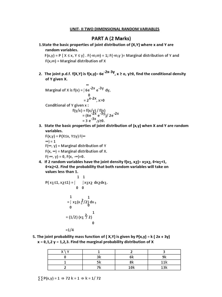Statistics And Probability Joint And Marginal Distributions