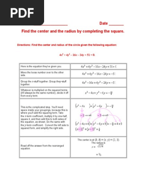 Finding The Center And Radius Of A Circle By Completing The Square