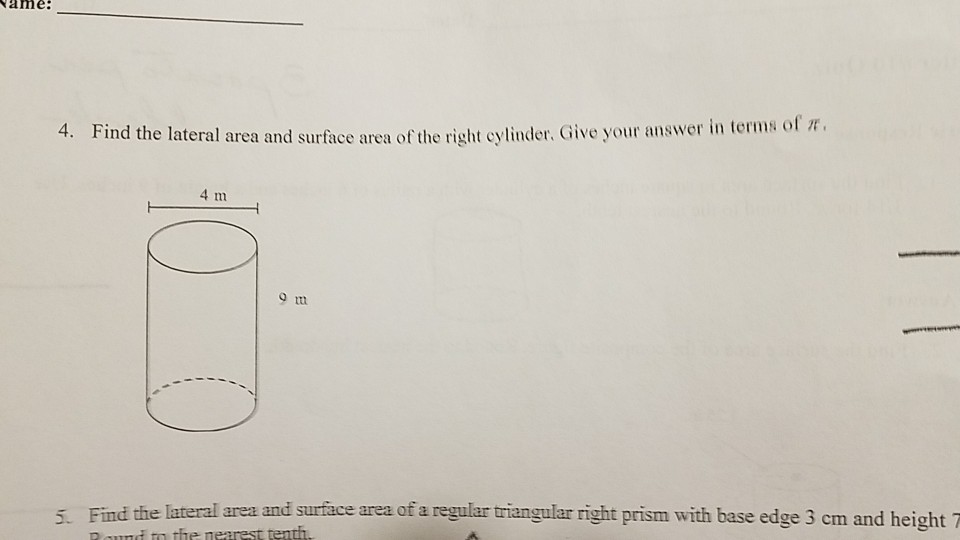 Finding The Volume And Surface Area Of A Cylinder Prealgebra