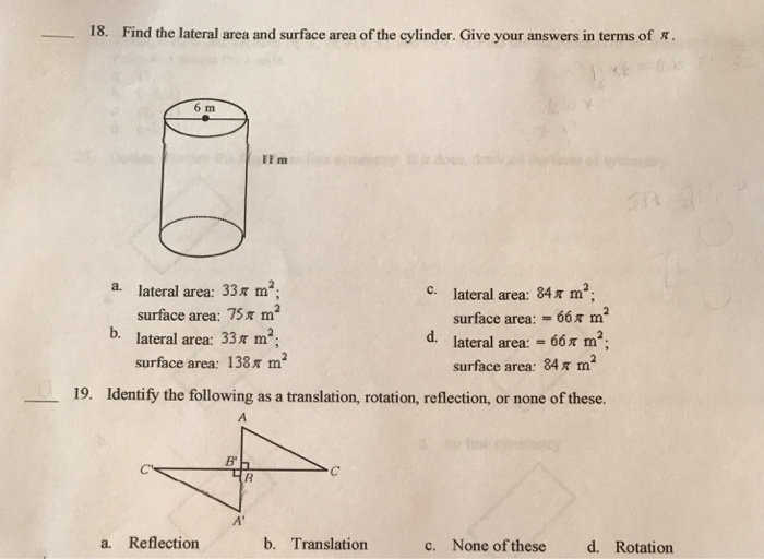 Solved Use The Net To Find The Lateral Area Of The Cylind