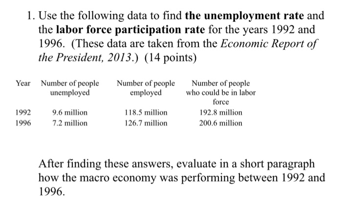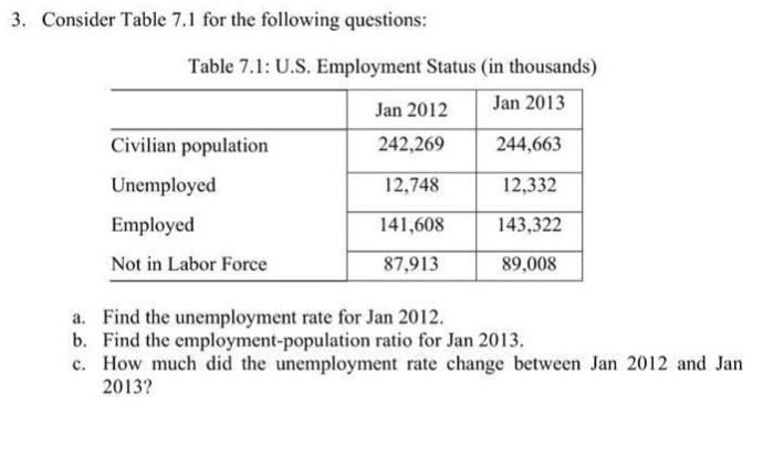 Solved Use The Following Data To Find The Unemployment Ra