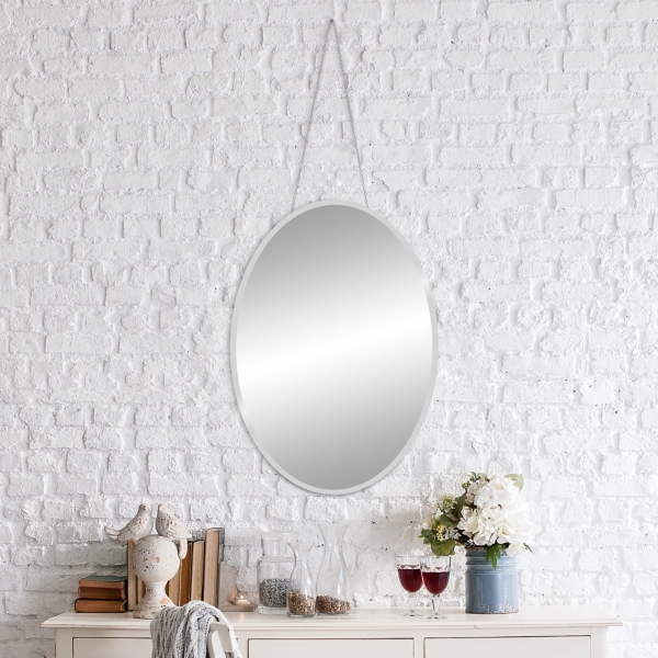 17 X 24 Frameless Beveled Oval With Hanging Chain Decorative