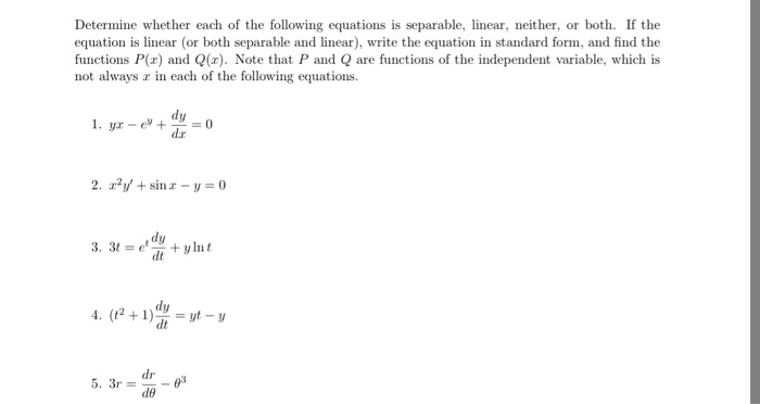 Write a first order linear differential equation in standard form. The expression x 1 2 x 2 has non linear terms in it but the function it defines is linear because it is equivalent to 2 x 1.