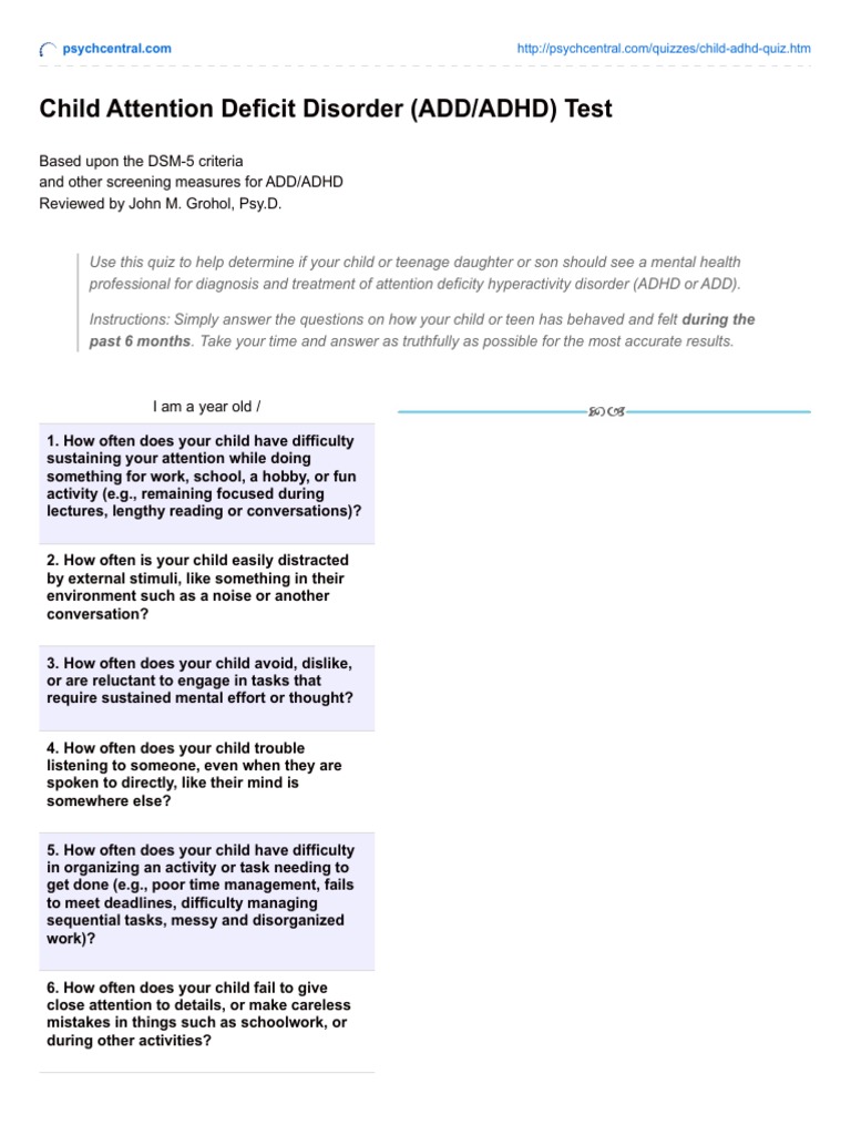 Adhd Pop Quiz Take It