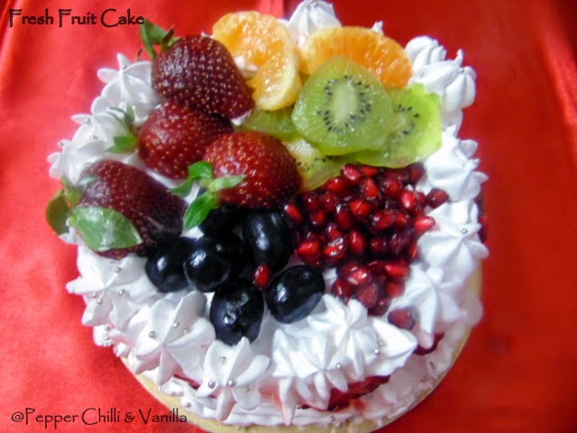 Eggless Fresh Fruit Cake With Whipped Cream Spices N Flavors