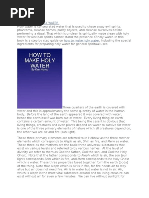 How to make holy water. How to make relic holy water get some water. If you can get your water from a nearby lake stream or river. Creating pagan holy water 1. Add salt to water for.