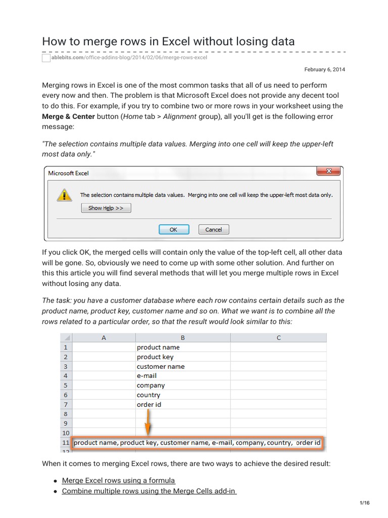 How To Merge Cells In Excel Without Losing Data