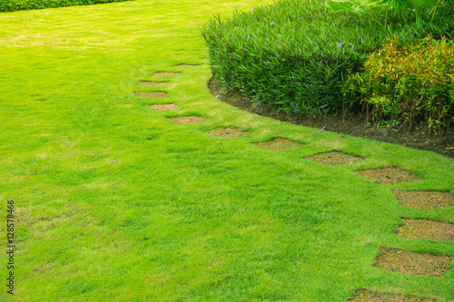 Pathway In Garden With A Freshly Mowed Lawn Top View Landscaping