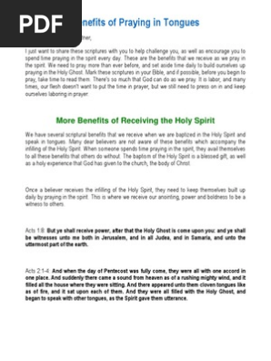 Read this free ebooklet to learn what tongues are and how you can receive this wonderful gift of the spirit. As you pray in tongues you have a direct line to the.