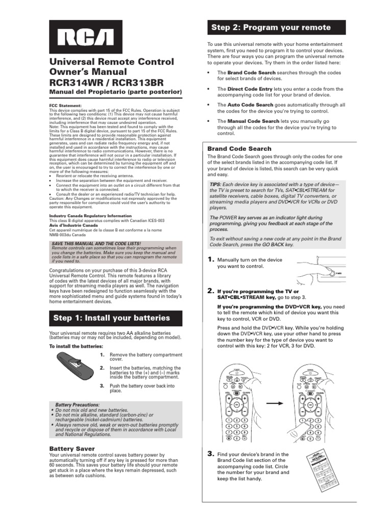 Rca Universal Remote Control Programming Instructions
