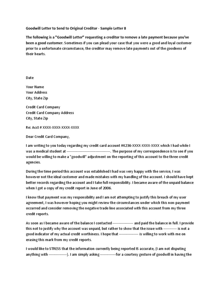 Sample Goodwill Letter To Remove A Late Student Loan Payment From