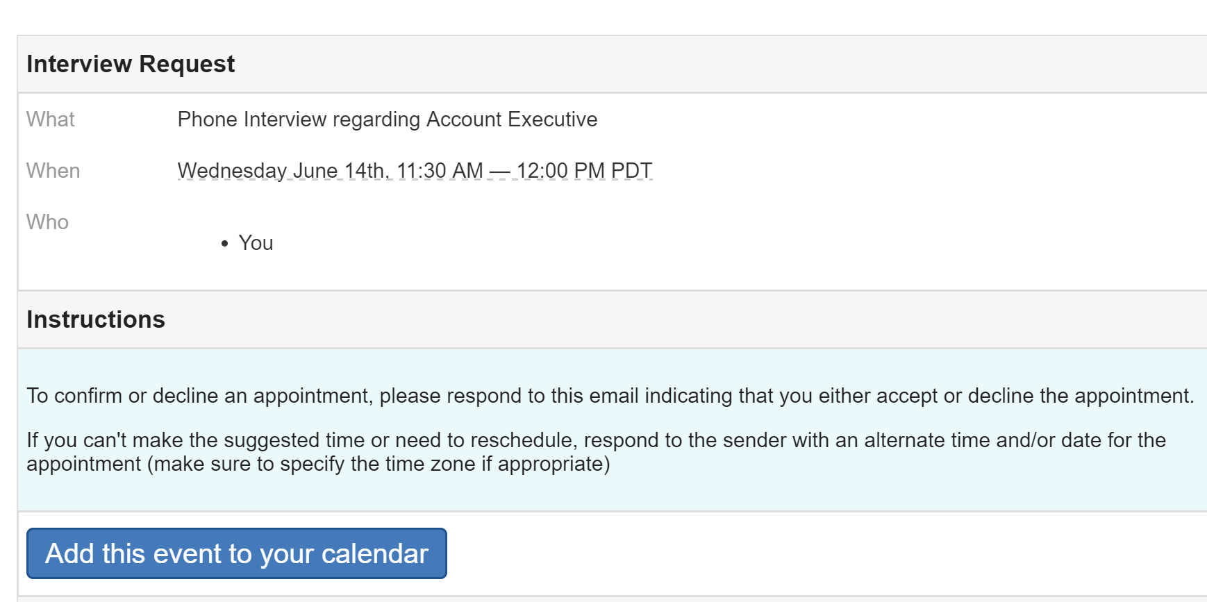 Etc and his or her last name. How to respond to an interview request by email or phone. Use the same format as the interview request for your response unless the. Remember this is the only chance you will get to make a first impression.