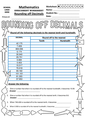 Round Decimals To Nearest Tenth Practice With Fun Math Worksheet