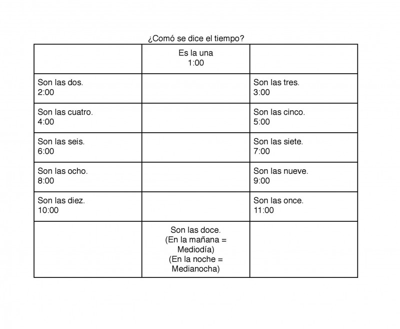 Telling Time In Spanish