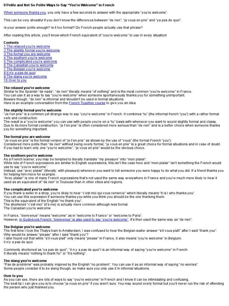 12 Polite And Not So Polite Ways To Say You Re Welcome In French