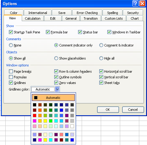 Changing The Color Of Worksheet Gridlines Microsoft Excel