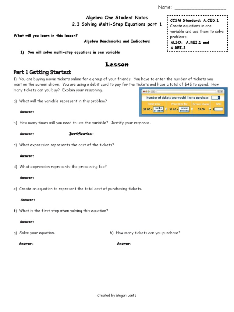 Algebra Multi Step Equations Lesson Plans Worksheets