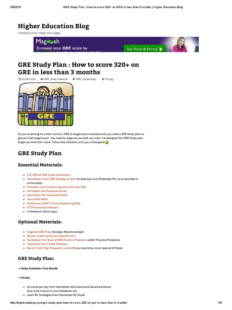 2 3 Month Gre Study Guide Magoosh Gre Blog
