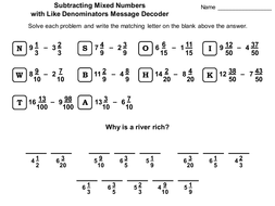 Solve The Riddle Subtract Mixed Numbers With Like Unlike