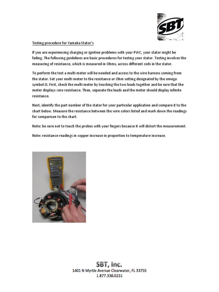 I chose to explain only two. Put the negative lead on the engines ground and the positive lead on each. Technically there are 3 possible tests you can do on a stator. Turn the selector on your multimeter to the ohms setting.
