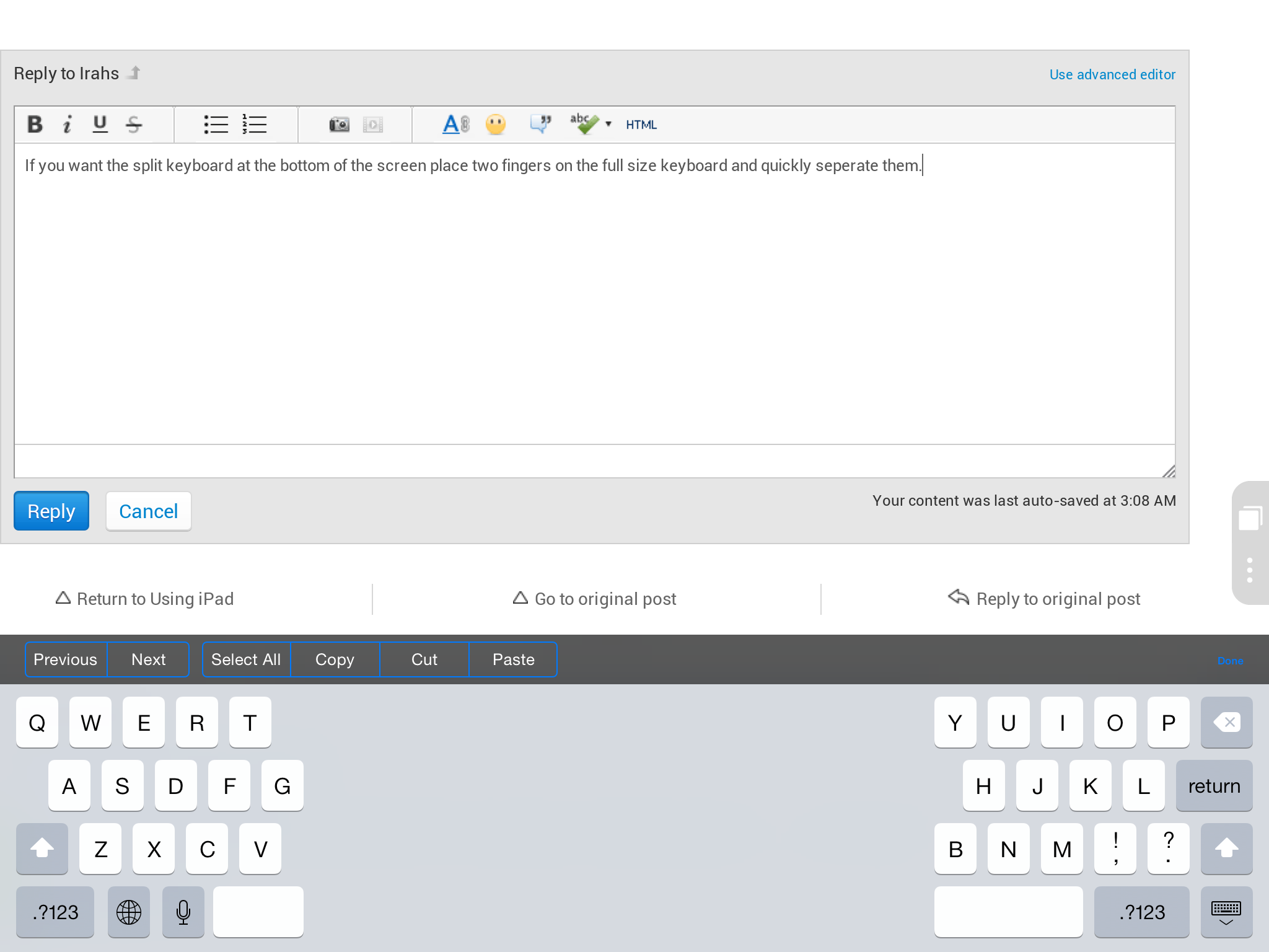 Keyboard Separated On Screen Apple Ipad Forum